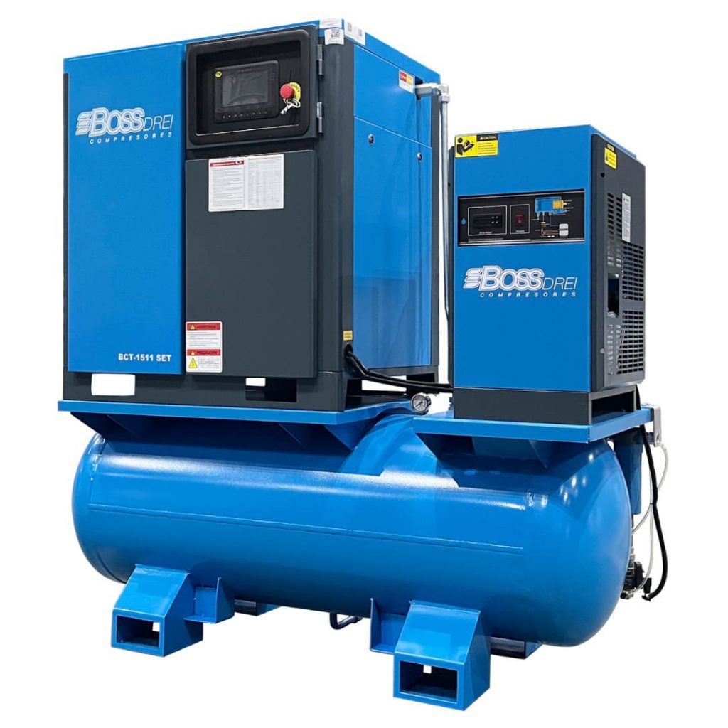 Revoluciona la eficiencia y productividad en entornos industriales. Esta innovadora solución integral combina en un solo sistema cuatro funcionalidades clave: compresión, almacenamiento, secado y filtrado. Diseñado para satisfacer las demandas más exigentes, el Set 4 en 1 se destaca como una estación completa de manejo de aire comprimido que opera con facilidad y precisión.